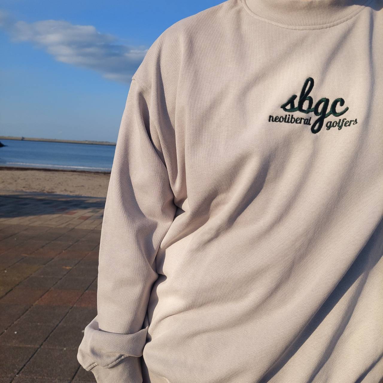 フロントには深い緑の刺繍でSBGCロゴがはいります